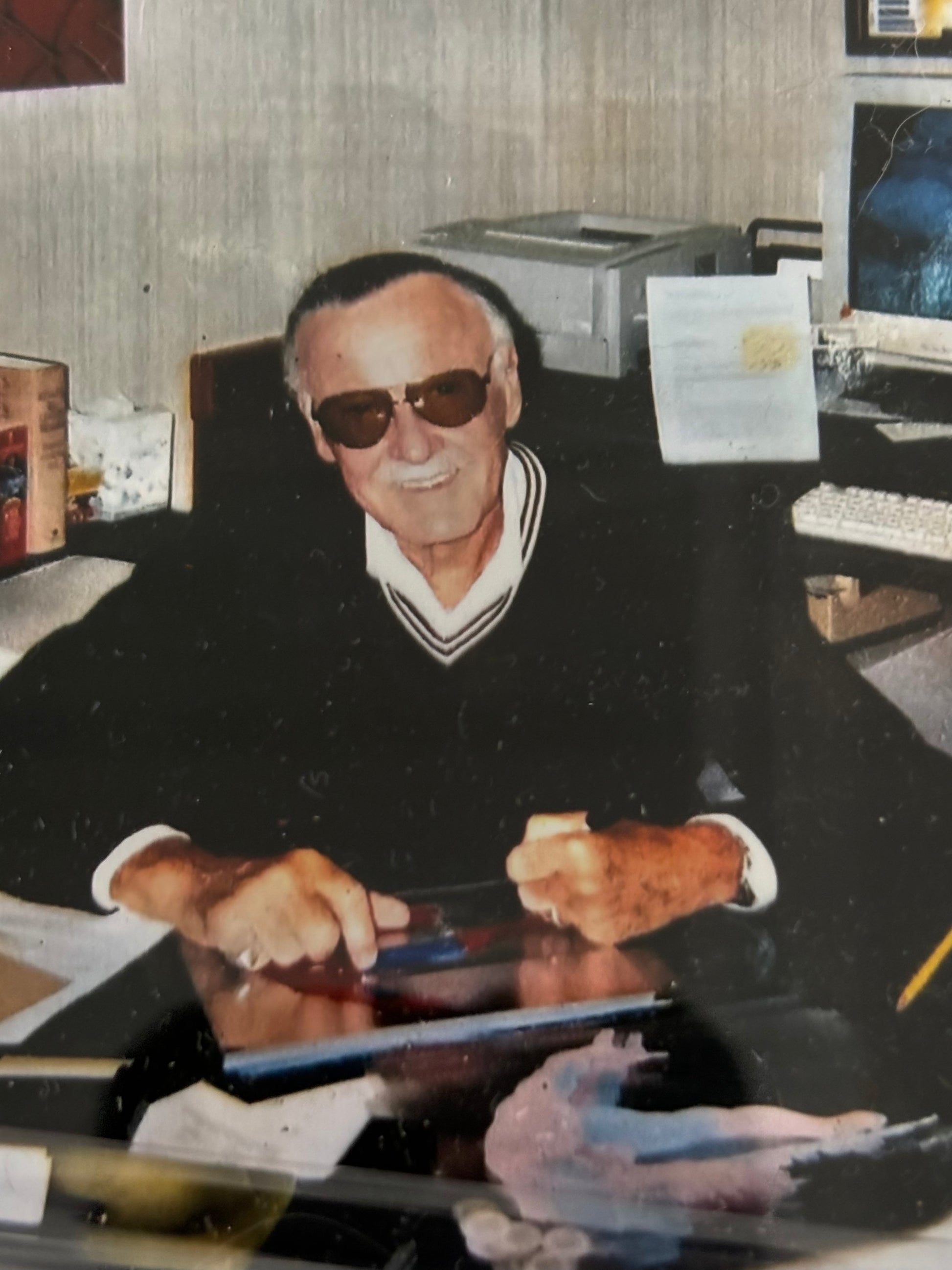 Check out this beautiful 3 piece set, double matted and professionally framed under glass! This great item features a Stan Lee hand Signed Spider-Man Animation Cel With a Photograph Of Stan Lee Signing this Spider-Man Seri-Cel, and both Framed With the Actual black Sharpie marker Stan Lee Used To Sign the Spider-Man Seri-Cel! This beautiful piece measures 16.5" x 21.25" and is 1.5 inches thick because of the Sharpie under glass also. This is a MUST and the absolute PERFECT piece of memorabilia for any serious Marvel comic art collector or fan of Marvel Comics and Spider-Man, to have framed next to any of your Marvel items! Click the red Linmk Above to see the SIGNED COA which is bagged and taped to back of the frame! Just a great piece! EXCELSIOR!